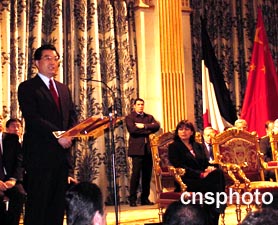 上午十一時半,在軍樂隊和儀仗隊的列隊引導下,胡錦濤主席健步邁入巴黎市政廳燈火輝煌的節(jié)日大廳,受到巴黎市官員、議員、各國駐法使節(jié)等一千多各界人士的鼓掌歡迎。