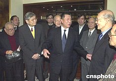 澳門特區(qū)政府二十九日在禮賓府舉行午宴,宴請澳門各新聞媒體,圖為行政長官何厚鏵向出席午宴的嘉賓拜年。