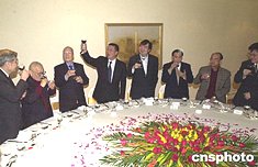 何厚鏵在午宴上向嘉賓們祝酒。
