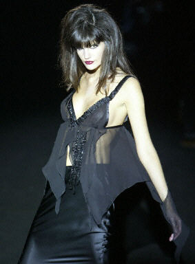 2月3日,在西班牙巴塞羅納時裝周上,模特展示了西班牙設(shè)計師Hannibal Laguna設(shè)計的性感露點裝。