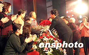 二月四日晚,北京市市民在政協(xié)禮堂舉行的紀(jì)念鄧穎超誕辰100周年的文藝晚會(huì)上,向鄧穎超塑像獻(xiàn)花,緬懷這位偉大的女性、慈祥的媽媽。中新社記者:史利