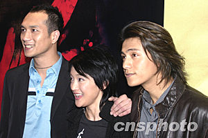 2月5日下午,電影《戀愛中的寶貝》在北京舉行首映新聞發(fā)布會。這部影片融合了中國電影第五代最前衛(wèi)的藝術(shù)思考與風格創(chuàng)新。正式放映之前就獲得包括威尼斯電影節(jié)、柏林電影節(jié)、墨爾本電影節(jié)、意大利遠東電影節(jié)、香港電影節(jié)等各大電影節(jié)的邀請。被稱為中國內(nèi)地2004年最值得期待的第一部國產(chǎn)大片。圖為影片的三名主要演員:黃覺、周迅、陳坤(從左到右)。作者:高遠