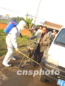 二月初廣西南寧市興寧區(qū)城郊的北湖園藝場發(fā)現(xiàn)禽流感疑似病例后,當(dāng)?shù)亓⒓催M(jìn)行防控,在進(jìn)出“疫點(diǎn)”的十三個路口設(shè)卡封堵,不準(zhǔn)家禽進(jìn)出,車輛和行人進(jìn)出一律消毒。目前接觸疫情人員沒有出現(xiàn)健康異常情況。作者:周群