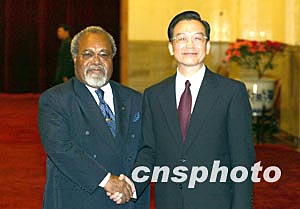 溫家寶闡述了中國政府在臺灣問題上的立場,并對巴新政府和索馬雷總理本人堅持一個中國政策給予高度評價。