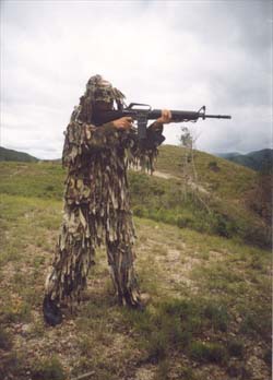我記得教官在訓(xùn)練前曾說過:“子彈只找不長眼的人!毕氲竭@里,我采取聲東擊西的戰(zhàn)術(shù),隨手撿起一塊石頭,朝我相反的方向扔去,爾后乘機迅速滾進眼前一條戰(zhàn)壕掩體內(nèi),繼續(xù)前進。當“守敵”再次發(fā)現(xiàn)我的行蹤時,我又用一根樹枝挑起帽子,隱真示假、吸引火力,突然轉(zhuǎn)移。接敵時,我冒著火光沖天的爆炸,時而快速通過獨木橋,時而匍匐穿過鐵絲網(wǎng),時而快速繞過雷場區(qū),終于在“守敵”布置的天羅地網(wǎng)中死里逃生。然而,當我出其不意地繞到“守敵”背后,大聲喊道:“不許動,繳槍不殺!”時,只見那些蒙面“守敵”,紛紛扭過頭,不是舉手投降,而是向我伸出了大拇指。正當我納悶時,他們紛紛卸下面紗,這時我才發(fā)現(xiàn)眼前的“守敵”,竟是與自己朝夕相處的教官、軍曹和勤務(wù)兵。