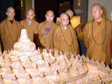 河南少林寺僧眾2月12日參觀臺(tái)北的世界宗教博物館。