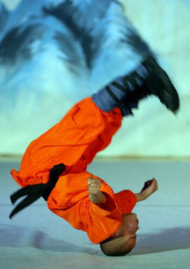在臺(tái)灣訪問的河南少林寺僧眾2月12日晚在臺(tái)北舉行和平祈福和慈善義演,他們?cè)诹x演中表演了少林棍、童子功、八段錦、炮錘、醉棍和羅漢十八手等功夫。