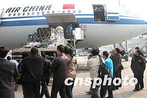 中新社成都二月十三日電(記者陳雯)今天中午十二點二十分,中國第一只海外出生的大熊貓“華美”乘坐CA四一一二航班由北京抵達成都雙流國際機場,隨后即換乘卡車,由警車開道,一路風光地趕往位于四川臥龍的中國保護大熊貓研究中心老家。