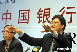 中國銀行行長經(jīng)濟(jì)顧問朱民(右)十六日在中行新聞發(fā)布會上表示:中國銀行將在一年內(nèi)將不良資產(chǎn)降到國際一般商業(yè)銀行水平,采用逐筆檢銷不良資產(chǎn)、建立新型戰(zhàn)略體制、強(qiáng)化內(nèi)控體系和風(fēng)險管理和人力資源改革四大步驟全面推行股份制改革。中新社記者:廖文靜