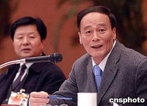 北京市代市長王岐山二月十六日下午參加北京市人大分組會(huì)議,就百姓拆遷工程等問題與代表展開討論。中新社記者:張宇