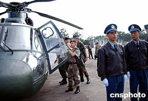 上午十一時三十分,以英國駐華武官科爾準(zhǔn)將為團(tuán)長的武官團(tuán)乘坐一架解放軍空軍專機(jī)抵達(dá)香港國際機(jī)場,受到廣州軍區(qū)、國防部、香港駐軍、香港特區(qū)政府有關(guān)負(fù)責(zé)人的熱情迎接。
