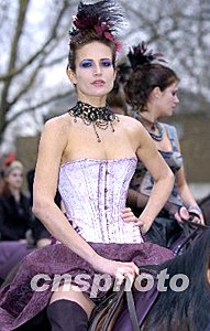 2004年2月,在英國倫敦秋冬時(shí)裝周上,著名時(shí)裝品牌Harriets Muse別出心裁,在倫敦街頭舉行服裝展示,引來許多路人關(guān)注。Ic/cnsphoto 攝