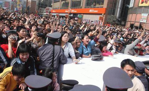 蕭亞軒昨日的戶外歌迷會是迄今在成都舉行過的歌迷會中最火爆也最瘋狂的一次。由于主辦方將活動安排在了春熙路寬敞的步行街,所以現(xiàn)場輕易就擠進了上萬名歌迷和看熱鬧的市民。中午12時不到,春熙路伊藤洋華堂周圍就已經(jīng)堵得水泄不通,附近的茶坊、快餐店甚至商場樓上也擠滿了歌迷。蕭亞軒成都歌迷會的100多名歌迷從早上6時就趕到現(xiàn)場,人人別一枚統(tǒng)一式樣的胸牌。一位宜賓的女歌迷更是20日就趕到了成都。雖然活動要14時才開始,但歌迷越來越多,主辦方不得不提前把保安調(diào)到現(xiàn)場。