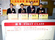 中銀香港聯(lián)同南洋商業(yè)銀行和集友銀行,于二十五日正式推出三項個人人民幣服務(wù)。和廣北今日表示,隨著香港與內(nèi)地的經(jīng)貿(mào)交流日益擴大和加強,即將推出的個人人民幣業(yè)務(wù),與香港市民有著十分密切、直接、實際的關(guān)系,因而引起各方的廣泛興趣。
