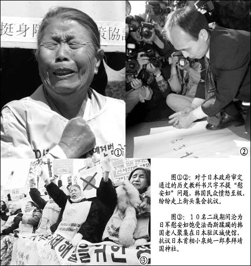 日本文部省2002年4月9日審定通過《最新日本史》教科書,這本由極端民主主義者編纂,于2003年8月開始在高中歷史課教學(xué)中實施的歷史教科書,對日本侵略者的暴行及強迫包括韓國婦女在內(nèi)的廣大亞洲婦女充當(dāng)日本侵略軍“慰安婦”的暴行避而不提。因此,《最新日本史》一經(jīng)出臺,立即引起了韓國各方的嚴重抗議。