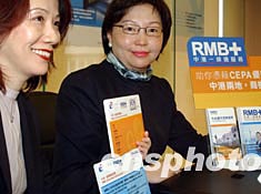 中信嘉華銀行二月二十六日在香港推出優(yōu)越個(gè)人人民幣服務(wù),“RMB+中港一線通服務(wù)”,包括個(gè)人人民幣服務(wù)及與CEPA相關(guān)的商業(yè)服務(wù),專為需要中國有關(guān)的銀行服務(wù)客戶提供增值的財(cái)務(wù)配套支持。圖為該銀行執(zhí)行副總裁林劉德美(右)和高級副總裁李笑英向傳媒介紹優(yōu)越個(gè)人人民幣系列服務(wù)內(nèi)容。作者:錢興強(qiáng)
