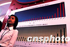 二月二十九日,北京舉行有始以來最大規(guī)模的留學(xué)人員回國創(chuàng)業(yè)成就展覽。展覽會上的圖表清晰顯示:新世紀(jì)以來,留學(xué)人員回國大幅度增加,二零零三年全國留學(xué)人員回國人數(shù)首次突破兩萬人。據(jù)介紹,從一九七八年至去年,中國各類出國留學(xué)人員總數(shù)已達(dá)七十多萬人,分布在世界上一百多個(gè)國家和地區(qū),累計(jì)回國留學(xué)人員達(dá)到十七萬多人。中新社記者:王麗南