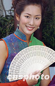 應屆港姐曹敏莉,三月四日在香港舉行的圖為“花城頌”攝影比賽上一展風采。作者:錢興強