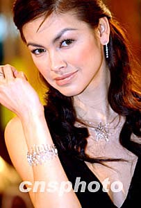 香港名模ROSEMARY,3月4日在時代廣場舉辦的“SPARKLING WOMEN”首飾展上,展示2004春夏最新首飾系列。作者:洪少葵