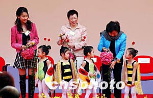 “2004年香港花卉展” 3月5日在維園舉行,民政事務(wù)局常任秘書長李麗娟【右】、香港旅游發(fā)展局主席周梁淑怡議員【中】、香港小姐曹敏莉等嘉賓主持開幕典禮。政府官員及嘉賓主持花卉展開幕典禮。作者:洪少葵