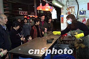 內(nèi)地五日開始為澳門恢復(fù)活雞供應(yīng)受到澳門市民的歡迎,經(jīng)澳門衛(wèi)生檢疫部門檢驗(yàn)后雞只下午開始在街市銷售,聞訊后的市民紛紛到市場排隊(duì)購買,僅一個多小時,在佑漢街市銷售的四百五十多只活雞就基本售磬。作者:李剛