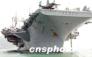 中新社香港三月六日電(記者陶社蘭)美國航空母艦小鷹號今天早上抵達(dá)香港,停泊在青衣島對開海面,進(jìn)行為期四天的例行休整。這是它繼二000及0二年后第三次訪港。
