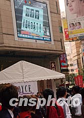 香港立法會議員李柱銘等人三月七日從美國返港,眾多市民高舉標(biāo)語在機(jī)場示威抨擊,反對李柱明赴美出席聽證會。圖為在時代廣場眾多市民觀看熒屏播放的有關(guān)新聞。作者:錢興強(qiáng)