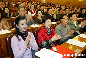 全國(guó)政協(xié)主席賈慶林主持大會(huì)。