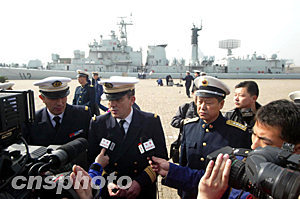 來訪的法國海軍艦艇編隊將于16日與中國海軍“哈爾濱”號導彈驅逐艦、“洪澤湖”號綜合補給艦以及“海豚”艦載直升機在青島附近的黃海海域進行非傳統(tǒng)安全領域的聯合演習。