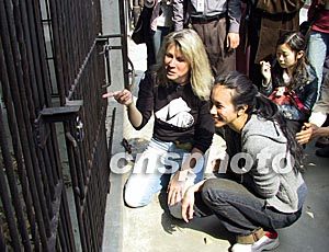 三月十二日,香港明星莫文蔚來到成都龍橋黑熊救護中心,捐款三萬八千三百八十八港元并出任首位“拯救黑熊愛心大使”。亞洲動物基金會的創(chuàng)辦人謝羅使臣女士給莫文蔚介紹養(yǎng)熊場的工具。作者:魯彥