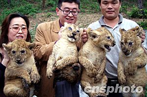 深圳野生動(dòng)物園自二月二日成為禽流感疫區(qū)后,已有四十二天閉門謝客,僅天鵝湖的治理就用去近二百噸藥品。解除封鎖后,十四日首次允許新聞媒體入園采訪,十五日對(duì)外開園迎客。圖為動(dòng)物園里剛滿月的四胞胎小獅子。作者:陳文