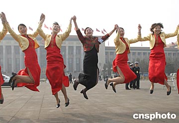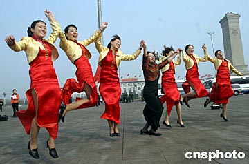 組圖:禮儀小姐快樂"起舞"慶祝"兩會"閉幕