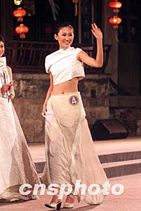 三月十五日晚,“古鎮(zhèn)西塘”2004年國際旅游小姐大賽中國區(qū)總決賽在浙江西塘落幕,來自長春的九號選手鈔俊男獲得大賽中國區(qū)總決賽冠軍。中新社記者:盛佳鵬