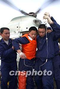 中國海軍在三月十六日的中法聯(lián)合軍事演習(xí)中成功救助“傷員”。中新社記者:宋吉河