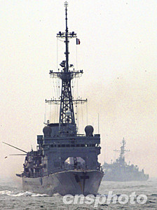 三月十六日,中法聯(lián)合軍事演習(xí)在青島某海域進(jìn)行,中法海軍協(xié)作配合戰(zhàn)術(shù)演練。中新社記者:宋吉河
