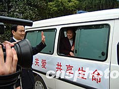 三月十八日,十支總數(shù)為三十人的湖北防治艾滋病專家隊(duì),分赴該省二十一個(gè)地區(qū)開展為期一年的巡回醫(yī)療。圖為湖北官員向?qū)<业绖e。作者:艾啟平