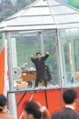 昨日上午7時,記者來到碧峰峽的接待大廳外,看見陳建民已端坐在玻璃房中的書桌前開始看書。據(jù)公眾見證人說,陳建民早晨6時就起床了。記者撥通了陳建民的電話后得知,原來他把平時的生活習慣也帶進了玻璃房。他告訴記者,平時他就習慣6時起床,所以前晚11時許他睡下時就定好了早晨6時的鬧鐘!敖^食第一晚,我睡得比平時輕松。因為平時晚上還有病人來求診,睡不安穩(wěn),昨日我一覺就睡到早上,像在休假!