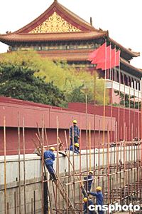 中新網(wǎng)3月25日電 3月24日,北京天安門觀禮臺翻建工程開工,預(yù)計在今年十月一日國慶節(jié)前竣工。昨天上午,《北京晚報》記者走訪了觀禮臺的設(shè)計者,今年已92歲高齡的張開濟老人。