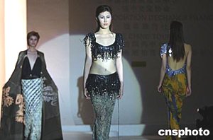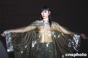 法國(guó)著名時(shí)裝設(shè)計(jì)師茜羅作品發(fā)布會(huì),二十五日在上海舉行。圖為模特展示一款透明裝。作者:湯彥俊
