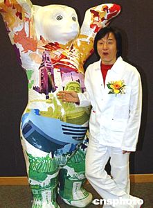 “熊熊愛心連世界”展覽三月二十六日在香港舉行記者會,該展將于五月至六月在維多利亞公園展出,是次活動旨在宣揚愛心、和平與團(tuán)結(jié),同時推動公眾藝術(shù)。圖為香港民政事務(wù)總署署長陳甘美華、康樂及文化事務(wù)署署長王倩儀、明星成龍以及德國駐香港總領(lǐng)事海因裹希·威廉·博伊特在記者會上簽名。作者:錢興強