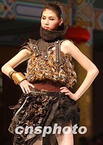 臺灣青年設(shè)計(jì)師陳琦珍在三月底北京“漢帛獎”第十二屆國際青年設(shè)計(jì)師時(shí)裝作品大賽中,以《武魂》主題將T型臺演繹為黑暗深淵的男女武士飄蕩之靈。 中新社記者:賈國榮