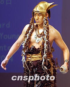 臺灣青年設(shè)計(jì)師陳琦珍在三月底北京“漢帛獎”第十二屆國際青年設(shè)計(jì)師時(shí)裝作品大賽中,以《武魂》主題將T型臺演繹為深淵中男武士的飄蕩之靈。中新社記者:賈國榮