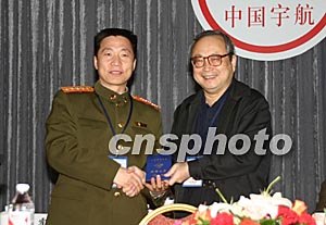 中國(guó)“航天英雄”楊利偉三月三十日被授予中國(guó)宇航學(xué)會(huì)榮譽(yù)會(huì)員。中國(guó)宇航學(xué)會(huì)理事長(zhǎng)劉紀(jì)原向楊利偉頒發(fā)證書(shū)。作者:周武