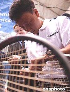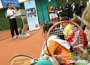 四月三日,美籍華人網球明星張德培應北京和睦家醫(yī)院之約,來到嘉里健身俱樂部網球中心慈善演講。此次活動的門票收入全部捐獻給美國教育健康基金會,用于幫助中國貧困地區(qū)醫(yī)療衛(wèi)生事業(yè)和孤殘病患兒童。作者:賈國榮