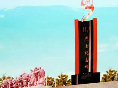 根據(jù)目前的設計方案,烈士紀念廣場選址衡陽烈士陵園。烈士紀念碑位于紀念廣場的東南面,是該廣場的標志性建筑。紀念碑高11.3米,長20米,中間是主碑,兩邊各是一組群雕。主碑由基座、碑座、主碑和鳳凰雕像組成,喻示20位烈士像鳳凰一樣在烈火中涅(般下加木)永生。主碑基座高1.19米,碑座周長11.3米,主碑直徑2.8米,是兩個缺圓,形似在“11·3”火災中坍塌的8層大樓,碑座下面缺口處刻有烈士事跡簡介,主碑中間刻“11·3烈士紀念碑”。紀念碑的兩組群雕由中間向兩邊傾斜,藝術地再現(xiàn)消防官兵撲滅“11·3”大火的壯烈場景。