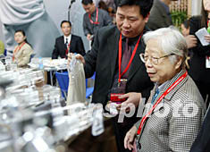 已故中共中央總書(shū)記胡耀邦的夫人李昭,四月五日來(lái)到北京國(guó)際展覽中心,觀看于當(dāng)日開(kāi)始的中國(guó)國(guó)際服裝服飾博覽會(huì)女裝展。中新社記者:毛建軍