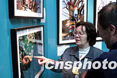 在北京植物園內(nèi)展出的日本駐華大使夫人阿南史代的“京華名樹(shù)”個(gè)人攝影展,吸引了不少參觀者。四月七日,大使夫人阿南史代在現(xiàn)場(chǎng)親自為參觀者講解當(dāng)時(shí)拍攝照片時(shí)的情景。中新社記者:盛佳鵬