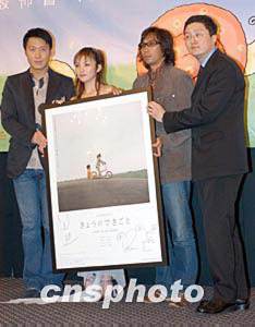 4月8日,香港國際電影節(jié)本年邀得日本電影《日出前向青春告別》參展,該片女主角田中麗奈、導(dǎo)演行定勛(右二)向大會(huì)致送該片海報(bào)予以留念,電影節(jié)宣傳大使黎明代表大會(huì)接收。