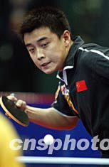 2004年雅典奧運(yùn)會乒乓球亞洲區(qū)預(yù)選賽四月九日在北京舉行,中國隊(duì)人氣最旺的新銳王皓在第一輪比賽中分別以四比零的相同比分輕取卡塔爾的阿里.哈馬迪與新加坡的蔡小林。中新社記者者:毛建軍