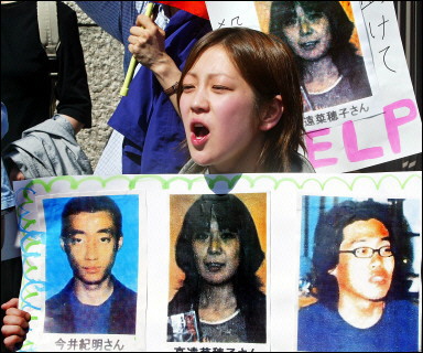 數(shù)百日本民眾在外相官邸集會,要求日本政府從伊拉克撤軍,以解救三名被綁架的人質。
